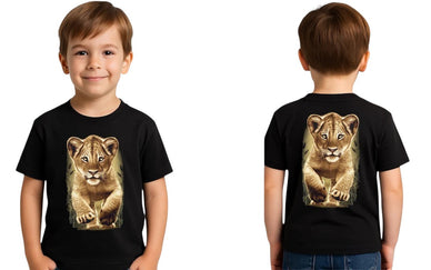 Consiente a tu hijo con una adorable camiseta de un león bebé corriendo. Un diseño realista, lleno de energía y ternura, que encantará a todos los pequeños aventureros.